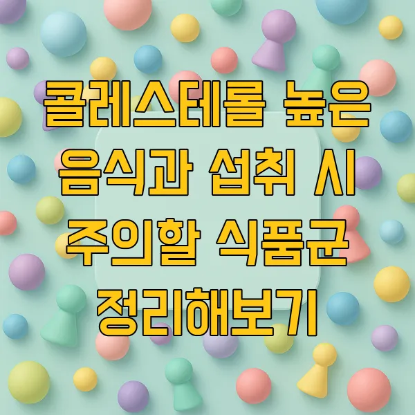 콜레스테롤은 우리 몸에 필요한 성분이지만, 과도하게 섭취하면 문제가 될 수 있습니다. 콜레스테롤은 주로 동물성 식품에 들어있으며, 특히 달걀 노른자, 새우, 오징어, 그리고 내장류에 많이 함유 되어 있습니다.